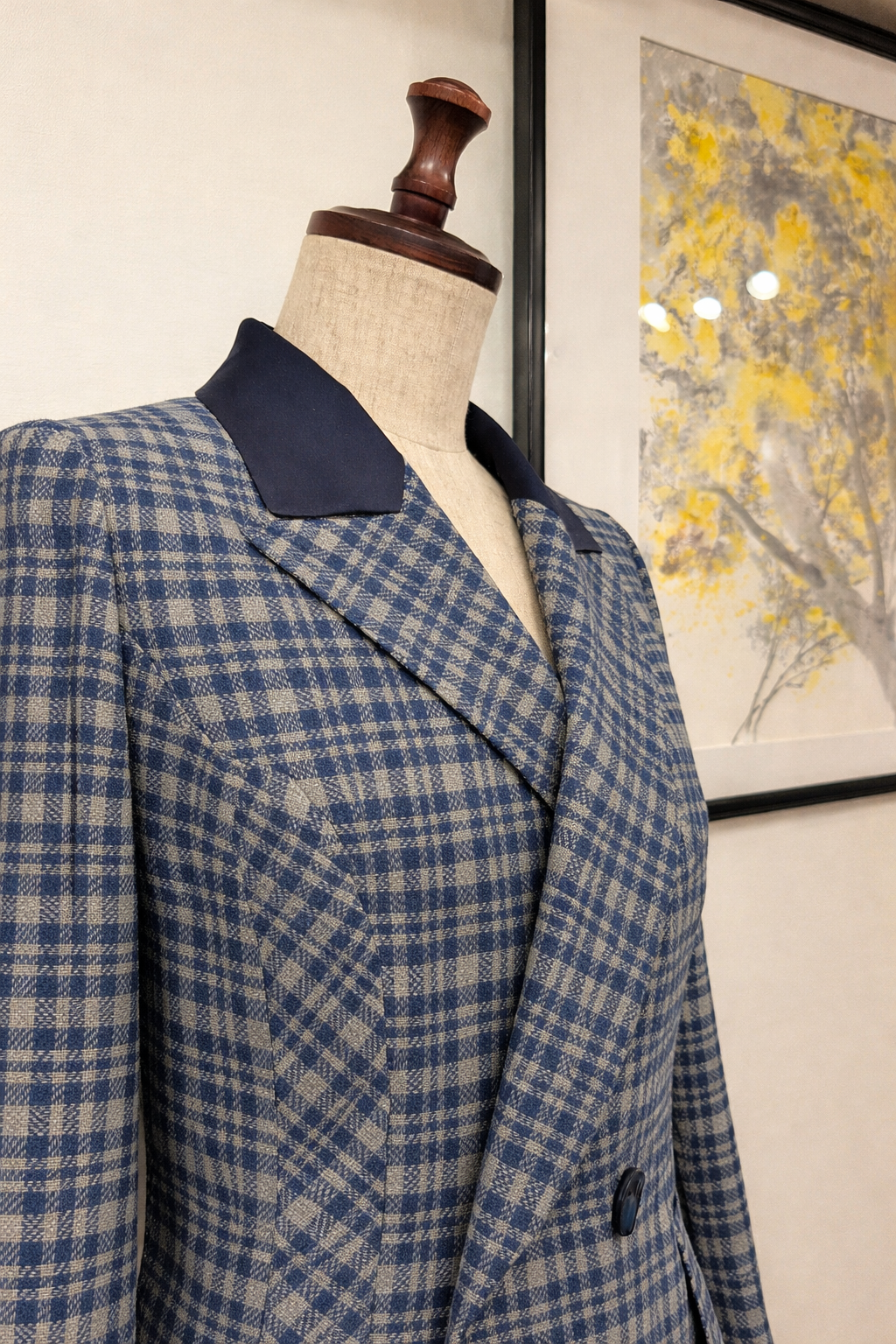 お客様の体型やご要望に応じて、一針一針心を込めて仕立てます。仮縫いを経ての完璧なフィット感と美しいシルエットが、着る人の品位を引き立て、心地よい着用感を提供します。